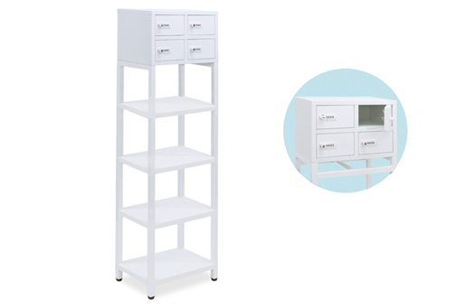 ■ダイヤル錠仕様の4人用貴重品ロッカー付きの便利なハンガーラック。 ■施術前に財布や時計等の貴重品を安心して保管できる暗証番号タイプ。 ※転倒防止のため壁面への固定が必要です。 固定用ビスと両面テープを付属しています |