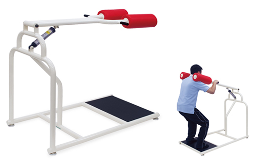 ■太ももと膝などを片側抵抗の負荷で転倒予防のリハビリトレーニング。