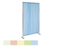 スペースに応じてカーテン幅を自由に伸縮できる3連スライド式衝立。