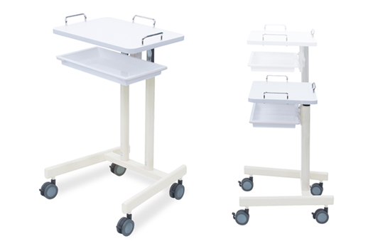 ■シンプルな機能性と操作性を追究した高さ15段階調節機能付きカート。 ■取り外しが可能で衛生的なトレー1個付き3面ガード付き白色天板。 ■直径7.5cm双輪キャスターを採用簡単固定4ヵ所ストッパー付き ※高さは天板上面までの寸法です。 |